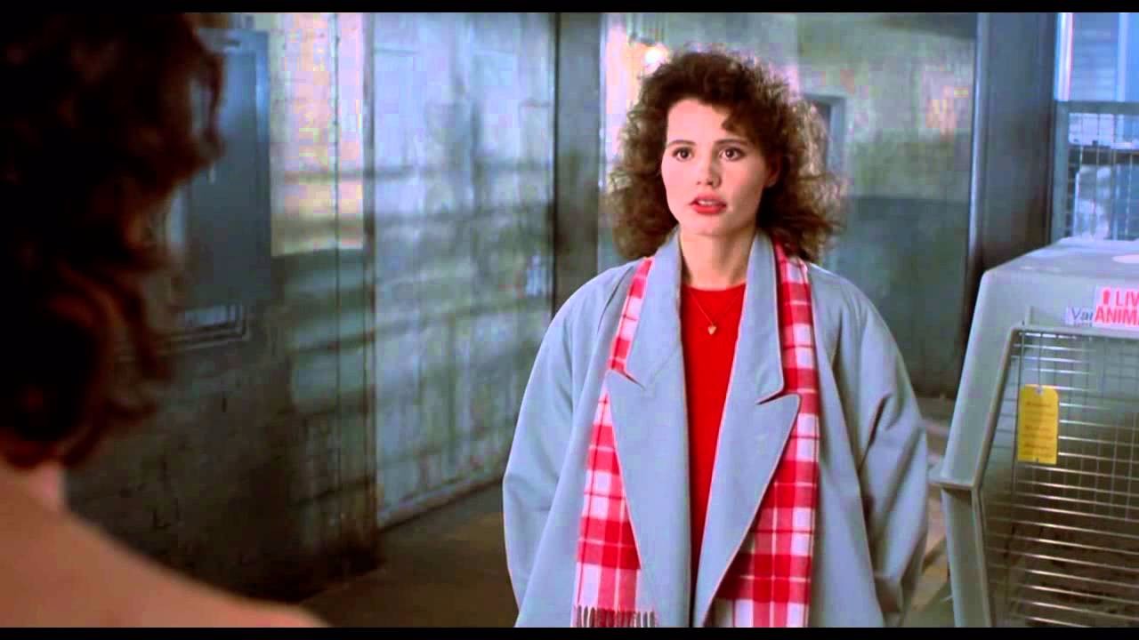 Geena Davis, about to utter her famous line in The Fly, 1986: "Be afraid. Be very afraid."